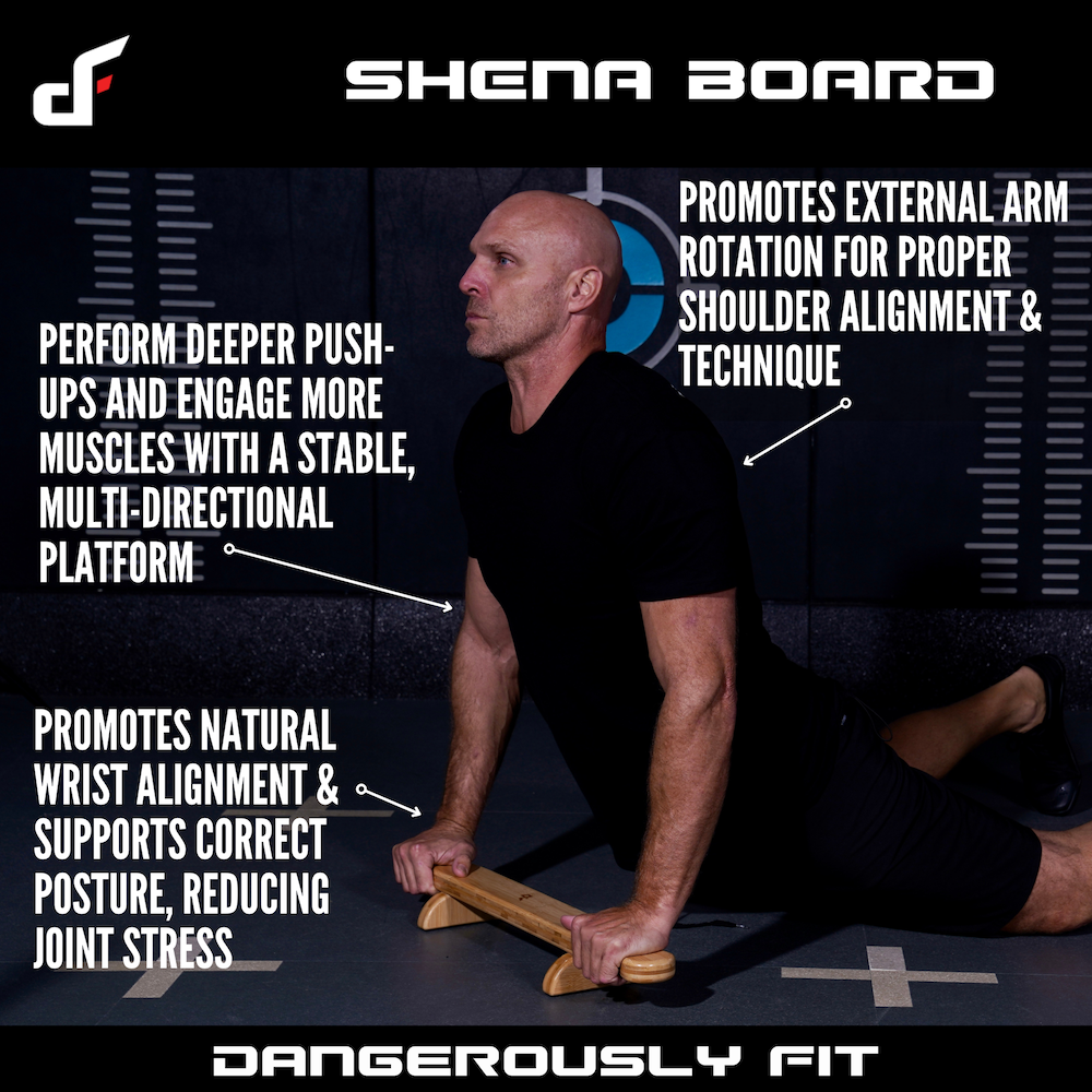 | What Makes the Shena Board Unique? | The Shena board lets your hands drop below the 12th rib, unlocking a deeper range of motion than standard push-ups. That means greater functional strength, less joint stress, and more effective training. Whether you're building grip strength, boosting shoulder mobility, or chasing endurance, the Shena evolves with you—pushing your limits every session. |